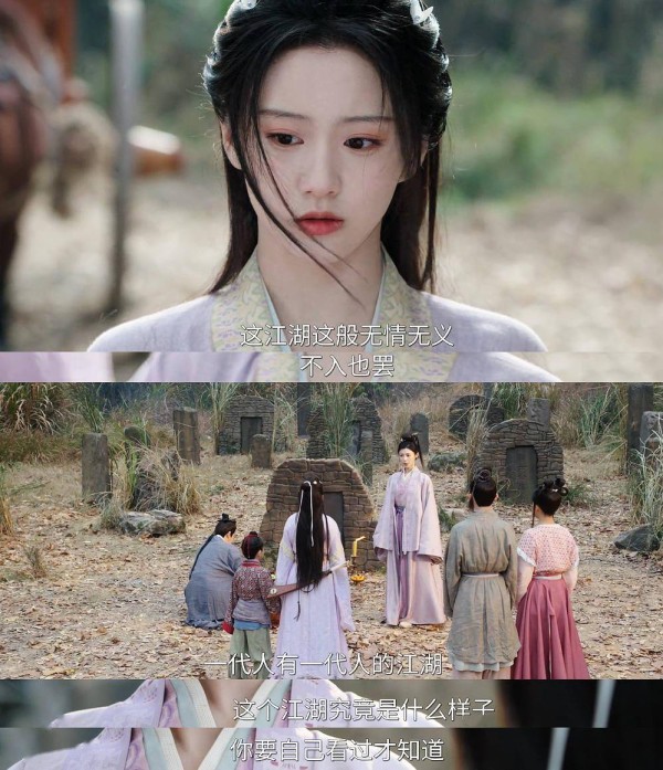 《十年江湖夜雨灯》的开篇是女主蔡昭被父母送往青阙宗拜师学艺的路上偶遇常家堡灭门,他们救下了唯一的幸存者常宁,灭门惨案的背后似乎还夹杂着上一辈的恩怨,在寻找真相的过程中上一辈的人总爱说:一代人有一代人的江湖!剧里用这句话来点题体现江湖,而剧外其实也非常符合这句话,一代人有一代人的江湖,上一代人看的江湖是打戏好快意恩仇,这一代的江湖是鼓风机、慢镜头、微瞪眼、站桩多……