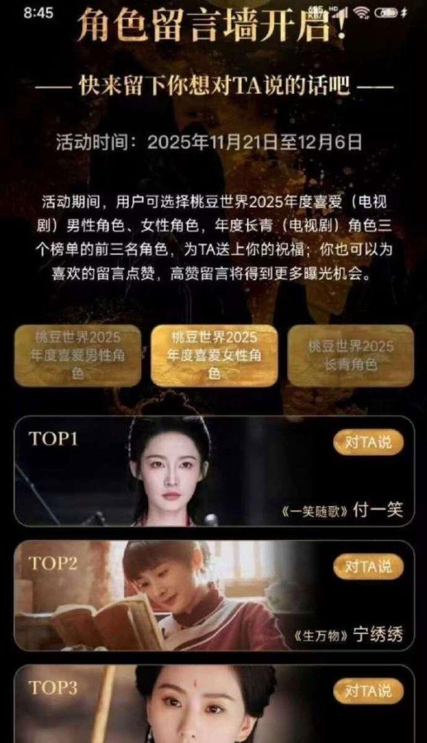 刘诗诗饰演的「东方淮竹」在11月21日的年度喜爱女性角色官方排行里排第3名,可到了6日的颁奖典礼上,她却没能出现,反倒白鹿的角色突如其来地冲到了第二名。这事儿让很多人怀疑名单被篡改啦。对此,爱奇艺在7日正式出面道歉,还宣布将为受影响的5个角色,包括「东方淮竹」和「宁绣绣」之类的,提供一周的各种免费服务。