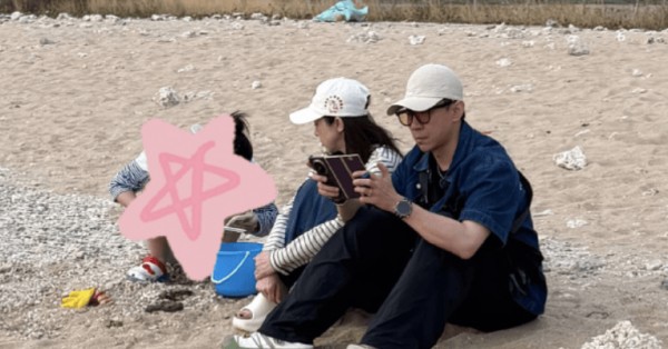 小酒窝手持小钳子专注寻找螃蟹,董璇则全程用手机记录女儿玩耍的可爱瞬间。张维伊穿着牛仔外套,坐在一旁细心守护,不时协助孩子寻找螃蟹,画面温馨有爱。