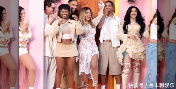 卡迪·B (Cardi B) 为了配合中场表演的着装要求,选择了中性色调的服装与坏兔子 (Bad Bunny) 同台演出,但她的造型过于繁复(而且可能也不太方便坐着)。这套服装包括一件带有长荷叶边袖子的紧身胸衣、一条荷叶边不对称迷你裙,以及一双露趾高跟鞋,鞋面采用人造革材质,一直延伸到大腿,看起来紧绷得有些不舒服。鞋子也破坏了她的身材比例,让她显得更矮。考虑到她并非压轴表演嘉宾,而且周围的大多数人(包括杰西卡·阿尔芭)都穿着比较休闲,这身装扮显得有些突兀,像是在演戏。
