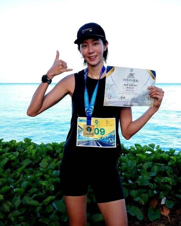 3月9日,金宥真在个人社交平台上晒出参加塞班马拉松的照片,并配文“10公里完赛”。