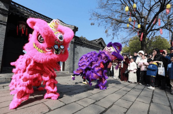 从除夕夜“三钟同鸣”祈福活动中,2000余名市民游客在文韵流淌中辞旧迎新,到正月初五全域联动开展民俗踩街大联欢,传统与创新交融的民俗盛宴为全市人民送上新春美好祝愿。古城“年味仁丰里”“瑞狮舞秦淮·财神送福来”等活动热闹上演,各地年蒸习俗体验、年货大集以及舞龙舞狮、腰鼓秧歌、踩高跷等民俗展演也精彩纷呈,传统民俗在烟火气中焕发新生。