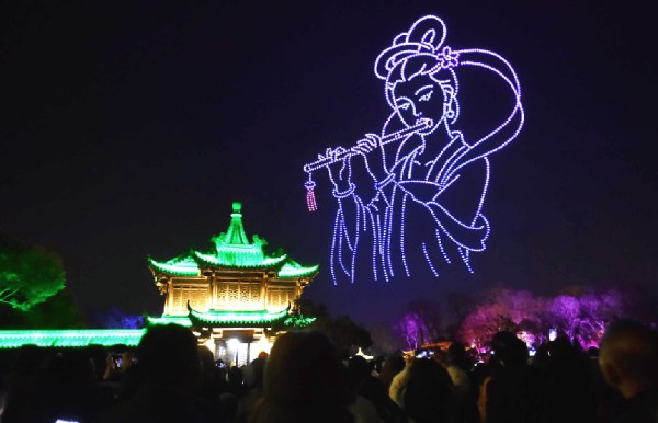 无人机灯光秀展演无疑是今年春节假期最亮眼的新场景,让游客在璀璨的光影中,感受古城新春的独特魅力。