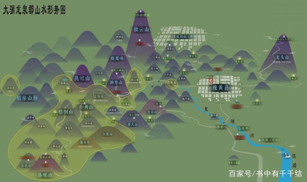 大骊龙泉郡山水形势图,第一次看这本书的可以仔细看看,不然懵逼的你,看着懵逼书,理不清你认为的懵逼的情节。记住几个主要地名和人物,新手村里面的内容就能很好串联起来,读起来就轻松易懂。