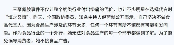 而这次,倪萍的代言再度惹怒了网友。她曾经明确表示过,绝不会为食品类广告代言,因为食品是直接进入身体的,她要为消费者的健康负责。可这回,她竟然代言了奶粉,这让很多网友感到震惊。她一度树立的正义形象,完全与她如今的行为背道而驰。网友们纷纷吐槽,她这做法简直是在打自己的脸。