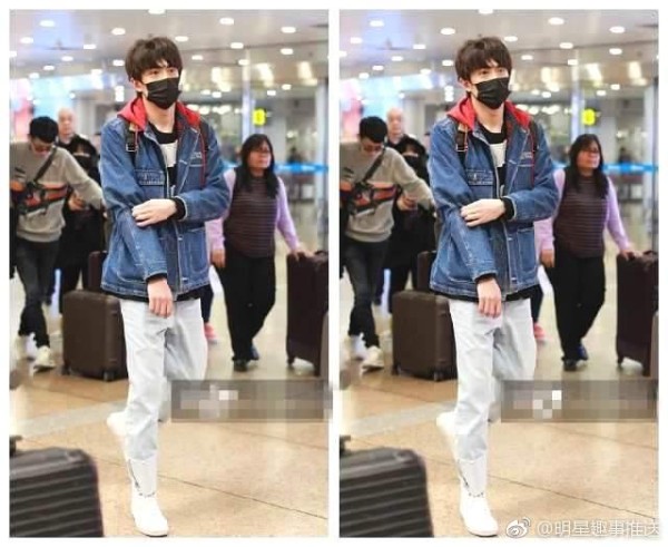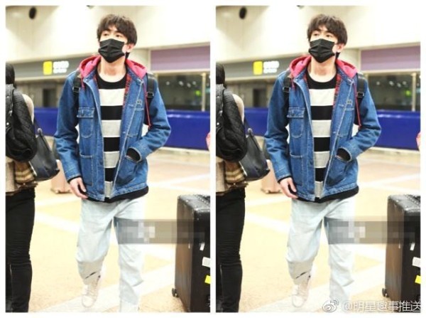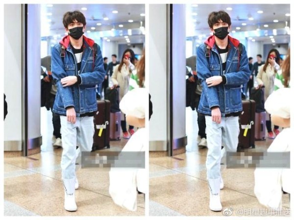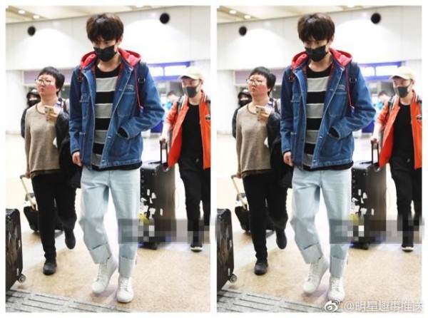 非常时尚的折起了裤脚,不看不要紧一看真的吓一跳,裤子上隐约的层次感让这一穿搭满屏都是他的大长腿。