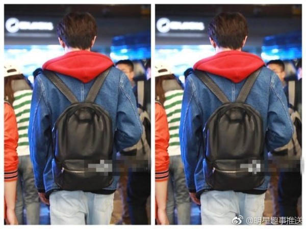 肩上背着一个黑色双肩包,简单单单的设计却总能给休闲风加分。