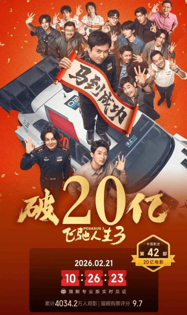 这个春节档,沈腾主演的电影《飞驰人生3》票房遥遥领先。据网络平台实时数据,截至2月21日14时25分,影片《飞驰人生3》票房突破21亿元,成为今年春节档首部票房破20亿元的影片。