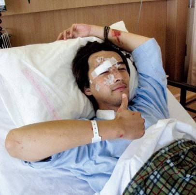 脸部缝了100多针,为了做植皮手术,四天内两次全身麻醉,当时胡歌经纪人蔡艺侬女士说:“在从手术室出来后,胡歌心里虽然挺恐惧的,但他善良,不想周围人担心,一看到我就笑着说“这是我的新造型”。