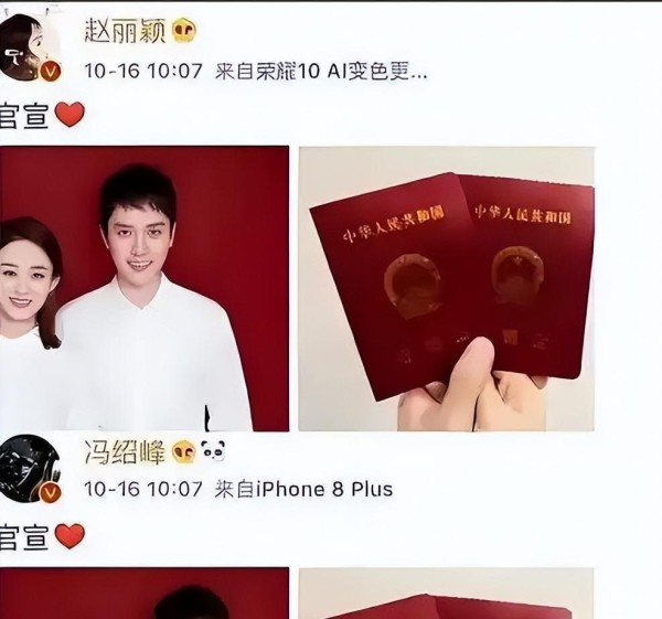 恭喜~~冯绍峰赵丽颖官宣结婚