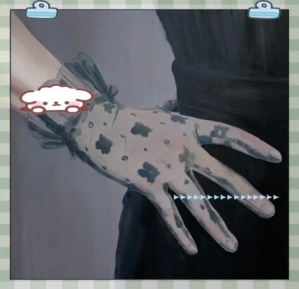 巨幅画布上仅有一只手臂伸出沙发外;皮肤纹理与沙发布料形成镜像关系——诱惑常藏在最熟悉的安全距离里。