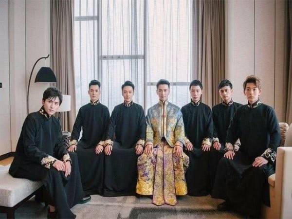 陈晓和陈妍希婚礼伴郎团:陈翔、张哲瀚、郑国霖等,虽然不是大碗,但都是在新《神雕侠侣》中的演员,可以看出陈晓夫妇很重视这部剧中的感情,不过现在的张哲瀚已经逐渐的展露头角了。
