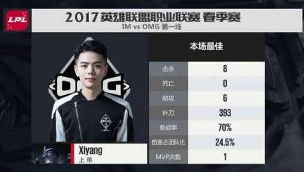 2017年LPL春季赛,OMG战队以小组第二进入季后赛,在季后赛以3:2战胜了IM战队,随后1:3败于WE战队,接下来又以2:3败于EDG战队取得第四名。 [9]