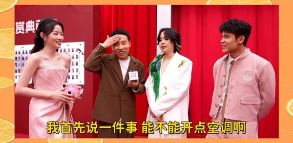 谈及天气状况,此次星光大赏的举办地海口,当日温度高达二十多度,夏日炎炎,然而场地内却未能开启空调,热风扑面。以往红毯上,往往是女明星们因寒冷而瑟瑟发抖,而今年却变成了男明星们汗流浃背,头发湿漉漉,妆容也因高温而卡粉。徐志胜在台上直言不讳地抱怨道:“求点空调吧,我都快冻僵了!”一旁的何广智则调侃道:“妆化完没多久,就全花了!”曹骏穿着毛衣直呼热得难受,不停地擦汗,而宋茜虽然自己扇风,却仍抱怨热风不断。丞磊因高温困扰,甚至在直播中不得不出场换气,这一幕恰好被白鹿捕捉到,他的头发宛如刚被水淋湿一般。