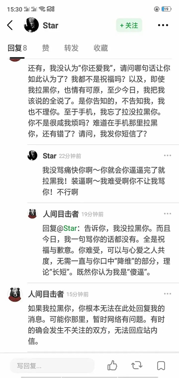 此部分本质已然心不在焉的回复接此篇,具体时间为2022年2月10日,断续的争论时间差不多维持了一周,直至2022年2月16日。也正是这种略显心无所用的半开玩笑态度,使彼时的星光女神-【崔明星】更为恼火。当然,也不排除此时另外一位叛离“知己”-【尼都】仍在另一边继续,断章取义,煽风点火。