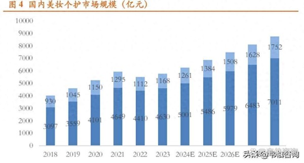 国内护肤品市场规模大于彩妆市场,未来彩妆市场增速有望提升。