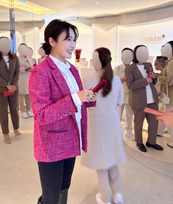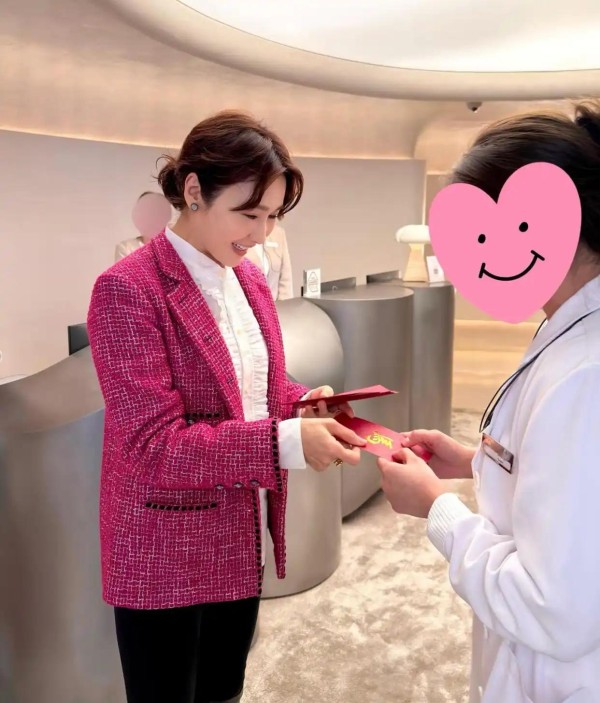 开工当天,黎姿以清爽扎发亮相,身穿玫红色香奈儿粗花呢外套,搭配紧身裤与长靴,身姿挺拔、线条利落,整套造型价值不菲,尽显上市公司CEO的气派。她亲自为员工递红包、送祝福,全程笑容亲和、毫无架子,现场氛围温馨热闹,被赞“最美老板娘”。