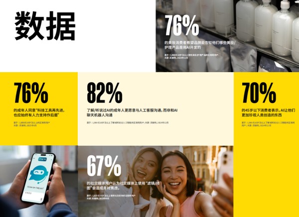 从原料研发到产品交付,从内容创作到用户体验,AI以效率为核心,完成了对美妆产业链的全维度赋能,成为当下美妆行业不可缺少的技术工具。但与此同时,英敏特(MINTEL)报告显示,76%的成年人认为“科技工具再先进,也应始终有人力支持作后盾”,为这场AI狂欢埋下了人本反思的伏笔。