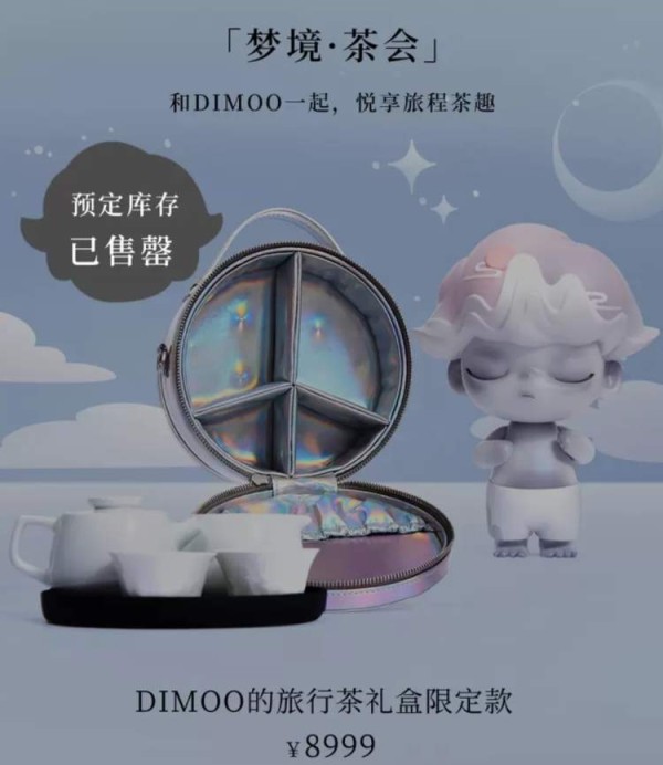 最后,限定版的Dimoo公仔,加联名款的茶具或者茶叶套装,形成完整的产品,进行成套发售。