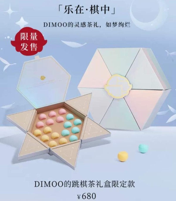 此前9月6日,双方共同联名打造DIMOO梦幻旅行家限定系列在「上下」的天猫旗舰店限量发售,茶礼盒限定款有三款:DIMOO的旅行茶礼盒、DIMOO的茶宠礼盒以及DIMOO的跳棋茶礼盒,定价分别为8999元、1999元、680元。