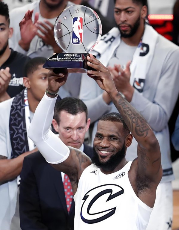 詹姆斯因伤退出全明星,但联盟还是邀请他拍摄定妆照,没有穿球衣,依旧站C位。从詹姆斯四年级、2007年开始,他就一直站C位。球员领袖詹姆斯也出席发布会和接受采访,也在场边观战。詹姆斯还跟联盟高层一样发话,说希望比赛越来越好,收视率增加,但要搞清楚,怎样才有利于篮球。NBA也要为观众和球员着想,站在他们的角度改善比赛。詹姆斯坦言他也在出谋划策,希望能解决问题,最重要的是怎么打造比赛。
