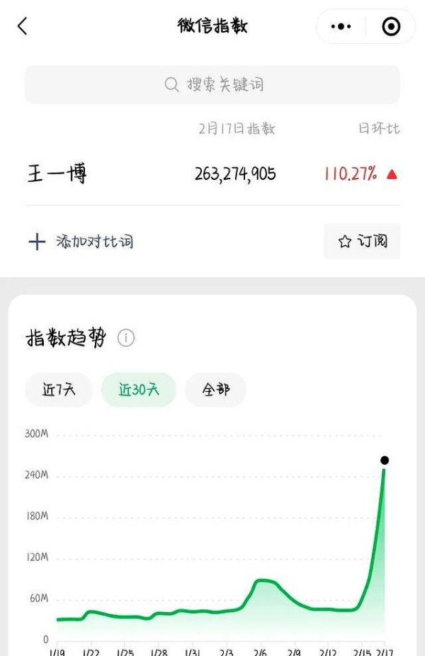 所以当王一博的微信指数干到2个亿这个数的时候,圈子里很多人第一反应不是祝贺,而是懵逼。