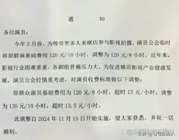 如果说大明星们的无戏可拍是行业衰败的冰山一角,那么底层演员的困境则更加直观地反映了行业的困境。从2024年11月15日起,横店宣布所有群演集体降薪。从原来的一天120元变成了135元,但工作时间却从8个小时延长到了10个小时。这种变相的降薪,让不少群演的生活陷入了困境。