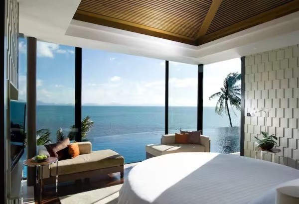 马国明与汤洛雯选择了泰国苏梅岛的Conrad Koh Samui酒店作为他们的婚礼地点,这是一家五星级的度假式酒店,位于苏梅岛西南边的朝海山坡,拥有81栋面向海景的豪华别墅,每栋别墅都有私人泳池和露台,可以欣赏到壮观的日落和海景,非常适合浪漫的婚礼和蜜月。酒店还提供了专业的婚礼策划和服务,为新人打造了一个梦幻般的婚礼场地,以大量的白色鲜花、水晶灯、蜡烛等装饰,营造出一种优雅而温馨的氛围。新人在海边的木制平台上进行了简单而隆重的仪式,互换戒指并甜蜜亲吻,接受了在场亲友的祝福和掌声。