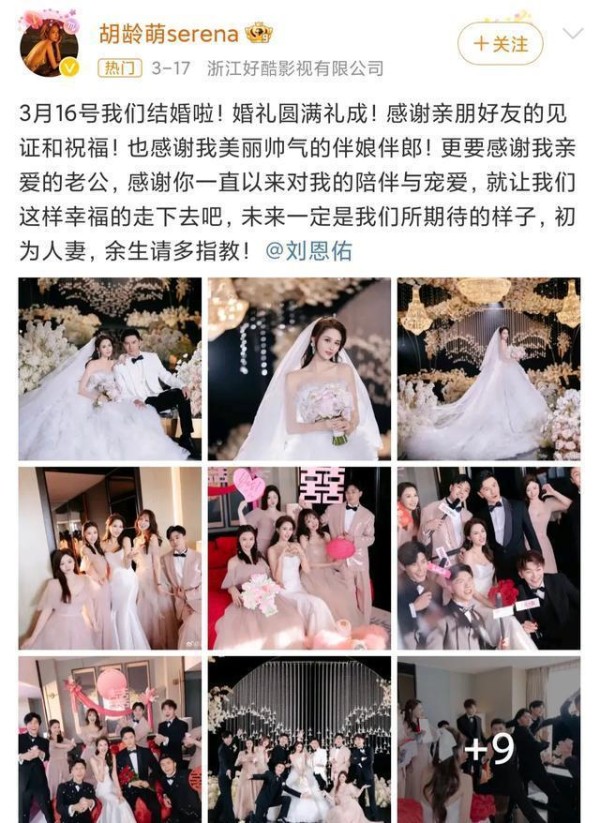 3月17日,胡龄萌通过社交账号官宣了她和刘恩佑的婚讯,并晒出了一组甜蜜又浪漫的婚礼照。两人身穿质感满满的西装和婚纱,在鲜花与水晶灯布置下笑容灿烂,看起来像童话里的王子公主。网友们纷纷留言祝福:“终于修成正果!”但同时也有人好奇:他们俩到底是什么来头?为什么能请到圈内这么多好友捧场,还把婚礼搞得如此精致?