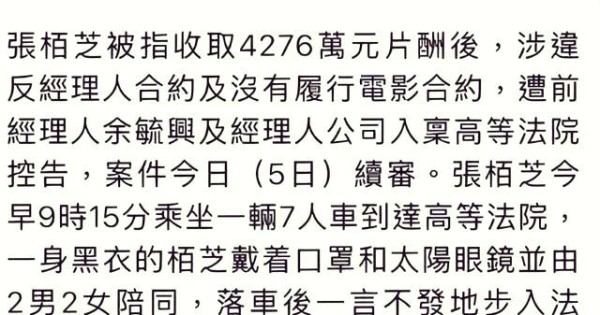张柏芝与前经纪人4276万元纠纷始末