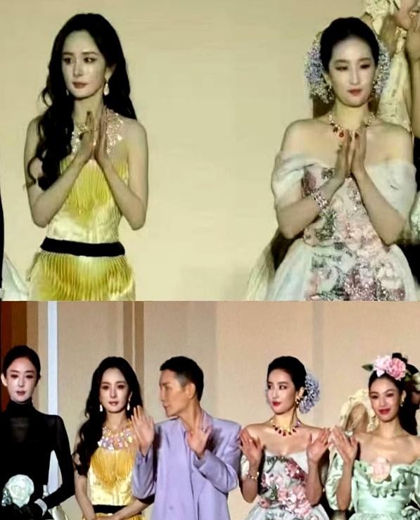 但在VOGUE场,杨幂虽穿上两套高定,走完程序,却遇到难以逾越的对手——刘亦菲,后者在那一场享受了压轴位置,合影时自然占据核心。