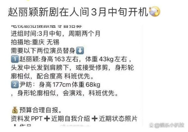 赵丽颖新剧《在人间》即将开机?网友曝光剧组招聘替身的内幕