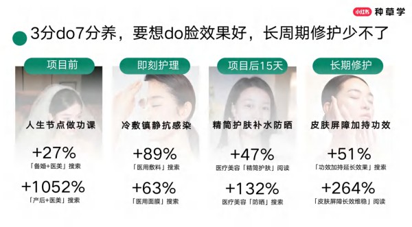 护肤品类在618期间展现出强劲的爆发力,尤其是防晒、眼部/唇部护理等细分赛道增速显著。品牌需根据不同赛道的爆发节奏,制定差异化的内容策略。例如,防晒品类需在5月中下旬开始加大投放力度,利用防晒测评、精准防晒新趋势等内容吸引用户关注;眼部/唇部护理品类则需在爆发期前夕,通过精准定位用户痛点,提供针对性的解决方案。