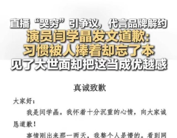 闫学晶的道歉,无论动机如何,至少承认了一点:思想出了偏差。忘了本。这个“本”,是来处,是根基,是让你之所以成为你的那片土壤。对于明星而言,这个“本”就是荧幕外的普通人,是那些为你贡献收视率、点击量、真金实银的每一个“普通人”。他们的生活,不是你直播时用来对比的背景板,而是托举你航行的海平面。