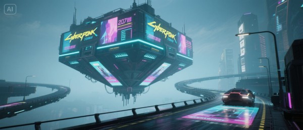 【风格】赛博朋克 2077 风格,冷色调 + 霓虹光效