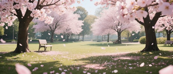 生成一个樱花飘落的公园