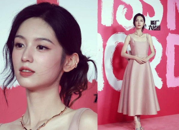 周也选择了粉色方领长裙搭配银色高跟鞋,这样的组合确实有些类似伴娘服的风格。然而,她的出色美貌却成功驾驭了这一造型,特别是此次的妆容,显著提升了她的气色。她那慵懒的盘发设计,更是营造出一种“轻松自在却依然美丽”的氛围感。总体而言,她的妆发设计为整体造型增添了不少分数。