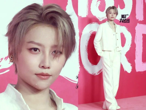 刘雨昕身着一套白色短夹克,虽在高清镜头下,下巴上的几颗痘痘显得略为明显,却丝毫不损其整体造型的酷帅。