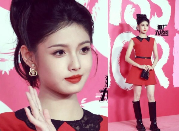 王玉雯同样选择了紫色的连衣裙,但她的款式更显成熟韵味。仅从身形来看,这一身造型——紫色连衣裙配以黑色包和黑色高跟凉鞋,颇有些40+高管在精心准备后出席年会的风采。