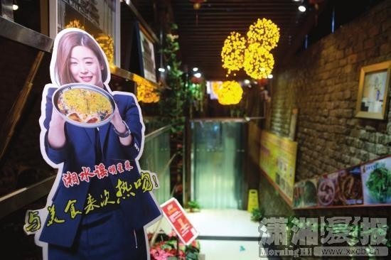 11月2日,长沙坡子街湘水谣餐厅,走廊内竖着韩国明星全智贤的广告牌招揽生意。