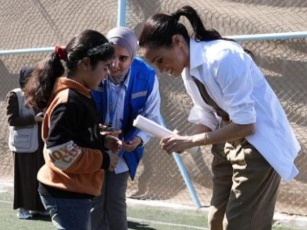 近日梅根和哈里到约旦,并一同来到QuestScope的青年人活动中心访问;让人没想到的是梅根罕换风格,一身休闲打扮十分洒脱,还有哈里也很随意。