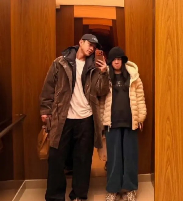 而第二套穿搭中,南方换了棕色抽绳风衣外套内搭白色长袖T恤,头戴深灰色棒球帽,而李嘉格则身穿黑色卫衣蓝色卫裤,外搭白色连帽羽绒服,头戴黑色针织帽俏皮可爱!