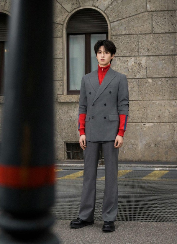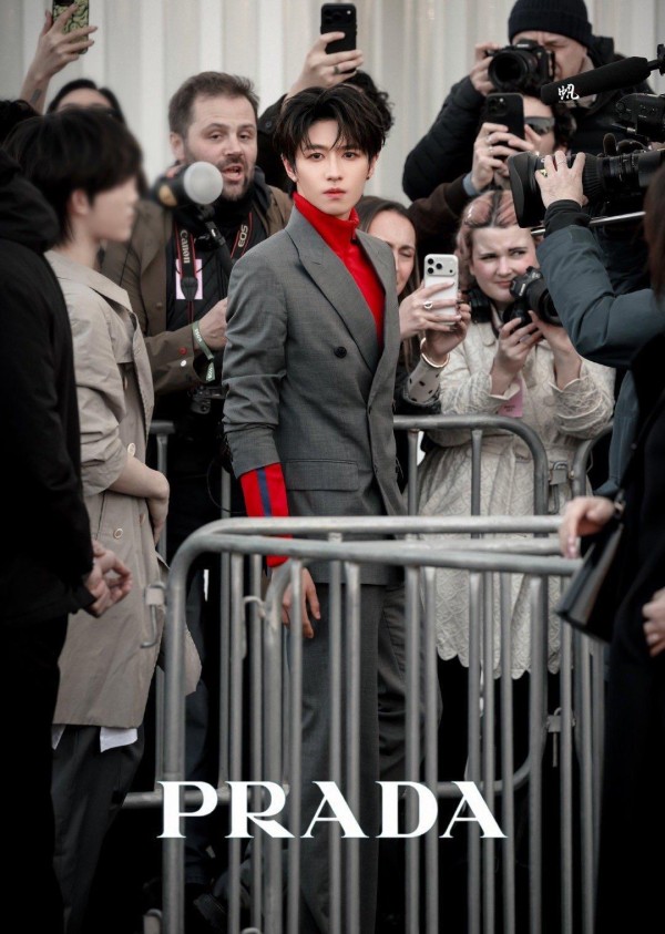 本次Prada大秀汇聚全球明星与时尚达人,朱志鑫作为TOP登陆少年队长受邀出席,这也是他连续第二年登上Prada秀场。当天他以品牌主推款造型现身,灰色廓形西装挺括有型,内搭亮眼正红色高领拉链衫,经典红灰撞色极具视觉冲击力,再搭配Prada三角标珠宝与皮质乐福鞋,少年清冷贵气与高级感拉满,外媒镜头下状态能打,挺拔身姿完美驾驭西装版型,尽显东方少年的舒展与精致。
