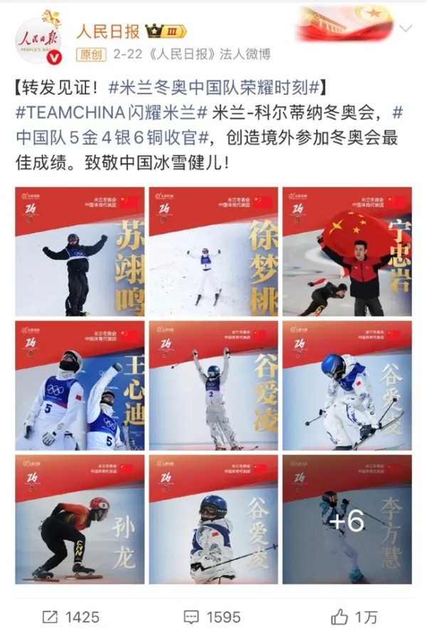 当地时间2月22日晚,第25届冬季奥林匹克运动会在意大利维罗纳闭幕。中国体育代表团在本届冬奥会上获得5金4银6铜,刷新冬奥会境外参赛历史最好成绩。作为中国奥委会合作的社交媒体平台,微博不仅全程见证了荣耀时刻,更以其独特的社交生态,成功构建了服务运动员、连接公众、放大赛事影响力的线上“第二主场”。