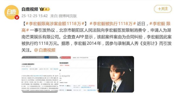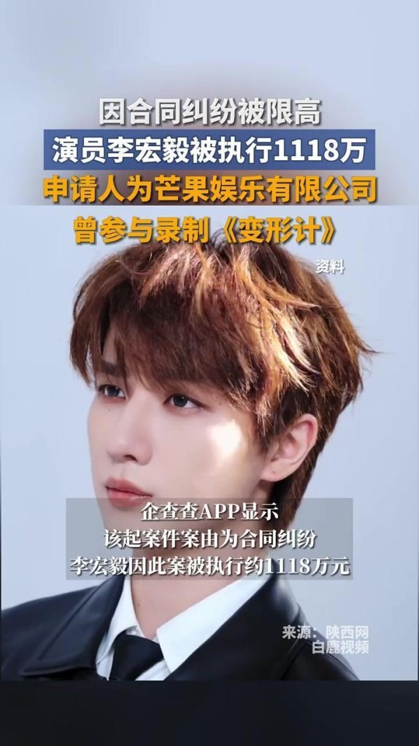 李宏毅因合同纠纷被限高,涉案金额1118万芒果娱乐追债1118万!李宏毅限高令背后,明星合同纠纷有多坑?