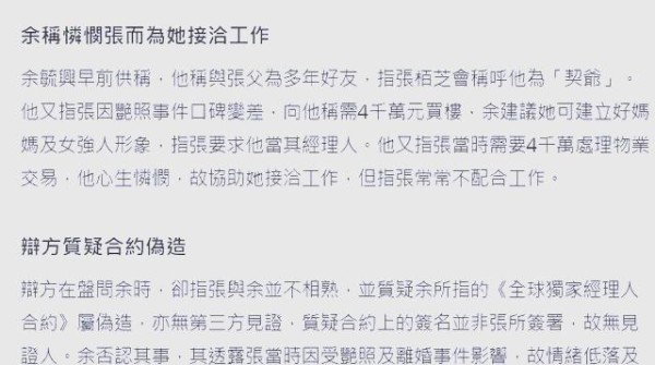 张柏芝与余毓兴合同纠纷:明星合约问题再掀波澜
