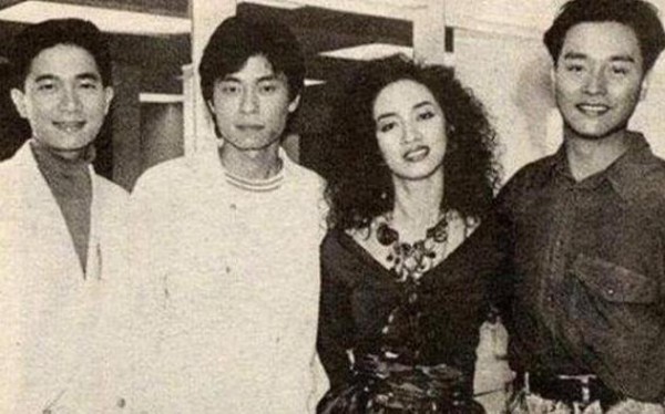 四位香港顶级歌手:张国荣,梅艳芳,陈百强,王杰的合影,如今其中的三位已经不在人世。