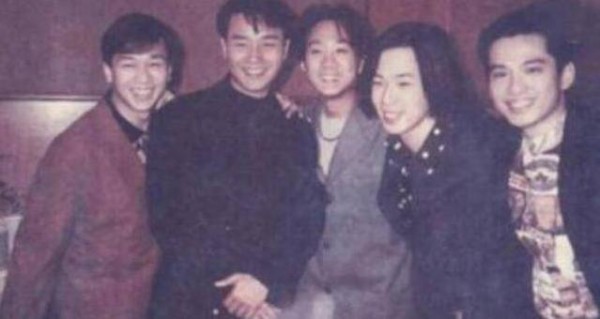 BEYOND四子与张国荣的合影,当时“哥哥”非常的喜欢BEYOND的音乐。
