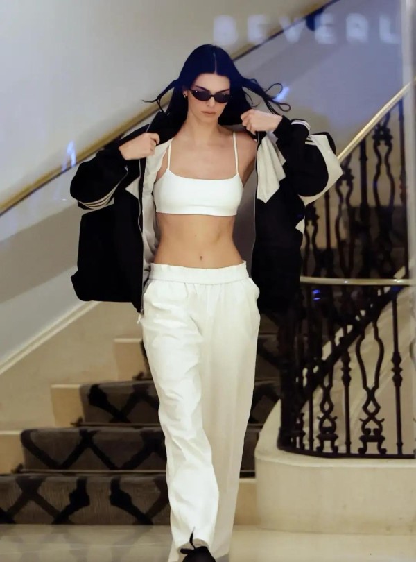 这套穿搭绝对不只有超模能驾驭,普通人也能通过“减法”穿搭出属于自己的风格。选择一件版型好的撞色运动外套很重要,搭配一条宽松的白色阔腿裤,简单的颜色配对不会错。如果对腹肌没信心,也可以用短款内搭代替小吊带,露出一点腰线就足够让穿搭有层次感,不一定非得练出超模线条。只要整体配色不凌乱,选对材质和大小,这身造型绝对不会踩雷。