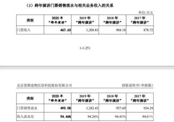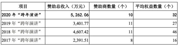 提到年度演讲,最早引领这一风潮的是罗振宇,其凭借多次跨年演讲,成功打造了“时间的朋友”这一IP,并在2017年~2020年内,为思维造物创收3459.36万元门票钱以及超1.5亿的品牌赞助收入。